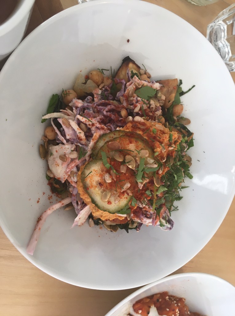 Sweet Beat was our choice for food. It’s an all-vegan restaurant that serves up incredible options. I had a penne pasta. A. had a lentil-pumpkin dhal. We shared a yummy salad mix, too. We were very hungry! And this ended up being our lunch/dinner.
